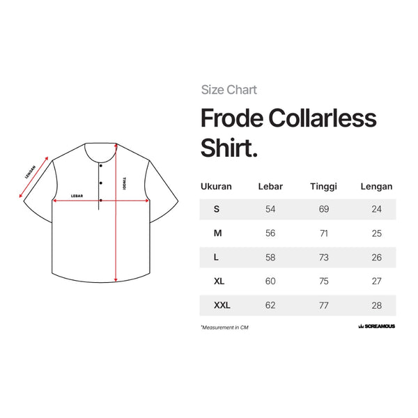 SCREAMOUS FRODE adalah Kemeja lengan Pendek pria yang dibuat dari bahan berkualitas tinggi dengan tipe Collarless dilengkapi half kancing deret. Menggunakan cuttingan Relaxed Fit Nyaman dipakai sepanjang hari.